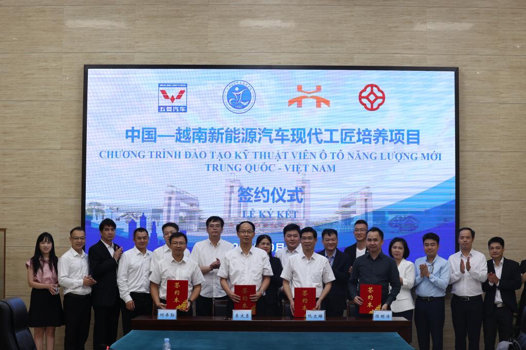 第二十一届中国-东盟博览会暨中国—东盟商务与投资峰会于9月24日—28日在广西南宁举办,吸引八方宾客共襄盛举、共创未来。来自越南交通运输技术大学、越南太平兴盛股份有限公司、广西汽车集团有限公司的代表团齐聚PP电子,在昆仑校区管理楼一楼会议室共同签署新能源汽车现代工匠培养项目合作备忘录。学校校长李文勇、副校长陈海峰出席签约仪式。