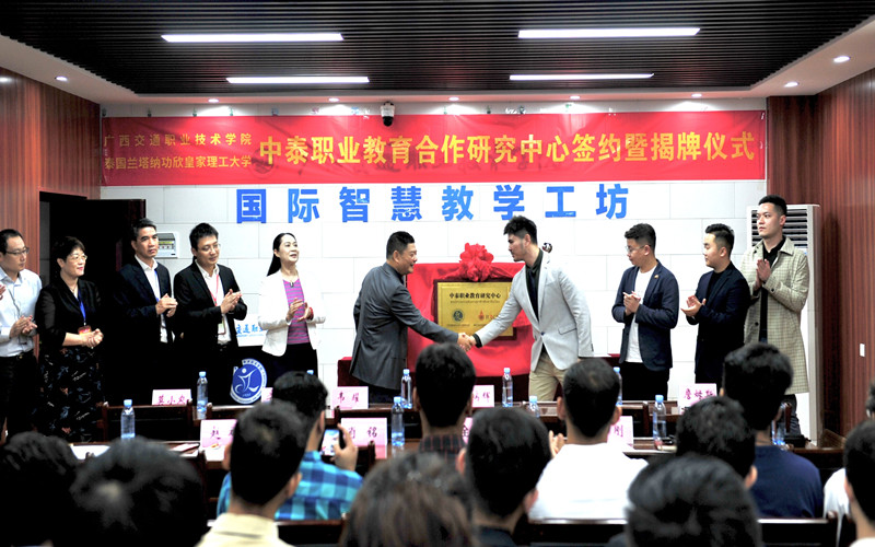 (东盟国际学院 讯 温韶春、钟佳利/文 雷裕欢/图) 10月16日下午,“中泰职业教育合作研究中心”签约暨揭牌仪式在园湖校区举行。学校党委书记温宗胤,以及东盟国际学院、学校办公室、教务处、发展规划处、交通信息工程学院、网络与信息技术中心负责人出席了本次活动。