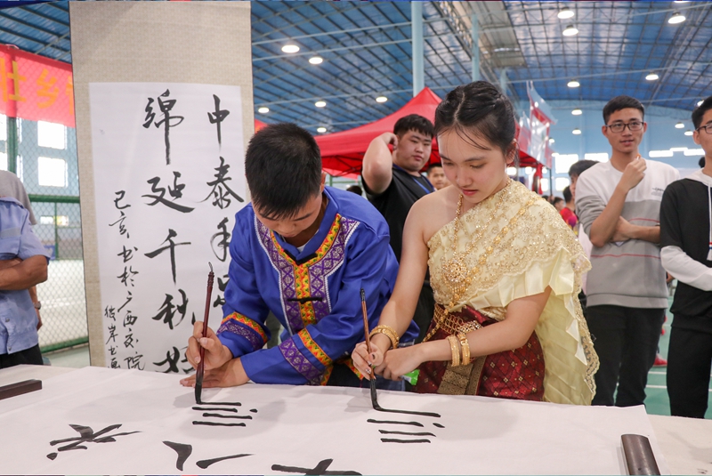 为践行志愿服务精神,弘扬和传承民族传统文化,4月16日,学院师生与依圣婉泰国女子中学20名师生一起,组织开展了“携手中泰,共筑桥梁”志愿服务活动、“共度三月三、歌舞壮乡情”民俗特色体验活动。