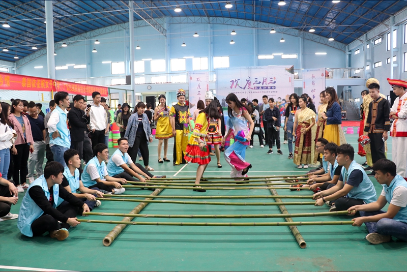 下午,以“壮族三月三”系列活动为契机,组织开展了具有广西民族特色的联欢会及民俗文化体验活动。精彩的醒狮表演、民俗服饰展示、壮味浓郁的壮族山歌对唱,更有泰国同学们的特色舞蹈表演,引得现场同学一齐打着节拍喝彩。现场欢声笑语不断。联欢会后,还开展了有趣的民俗体验,如竹竿舞三人板鞋、抛绣球、踩高跷、滚铁圈、舞狮等民俗体育项目。现场展出五色糯米饭、艾糍粑、粽子等特色食品,现场制作水果拼盘、彩绘鸡蛋、泡茶品茶、挥笔作画。