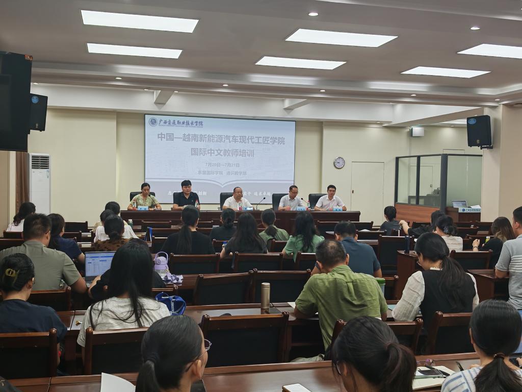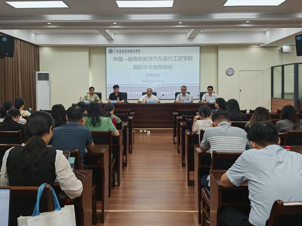 2025年7月20日上午,中国—越南新能源汽车现代工匠学院国际中文教师培训班开班仪式在PP电子游戏网站园湖校区隆重举行。培训由东盟国际学院联合汽车工程学院、通识教学部共同举办,广西高等教育学会外国留学生教育管理专业委员会理事长覃成强教授、汽车工程学院、通识教学部和东盟国际学院领导出席开班仪式。