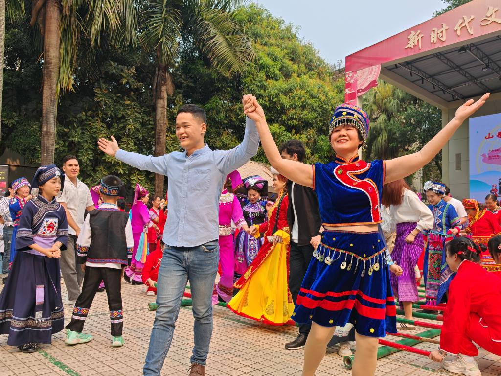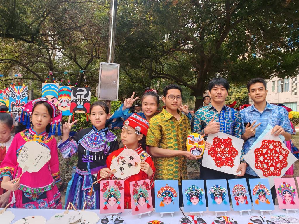 在工艺品展区,留学生们沉浸于手工艺品、剪纸、茶艺制作的体验之中,对中国传统文化表现出浓厚兴趣。他们仔细聆听文化讲解,深入了解每项技艺背后深厚的文化内涵。留学生英星空兴奋地表示:“我要亲手制作手工艺品,带给自己的家人,让他们也能感受到广西独特的民族文化魅力。”摩洛哥留学生狄赛德则激动地说:“这是我第一次看到如此精彩的民族歌舞表演,我感受到了人们对生活的热爱。”