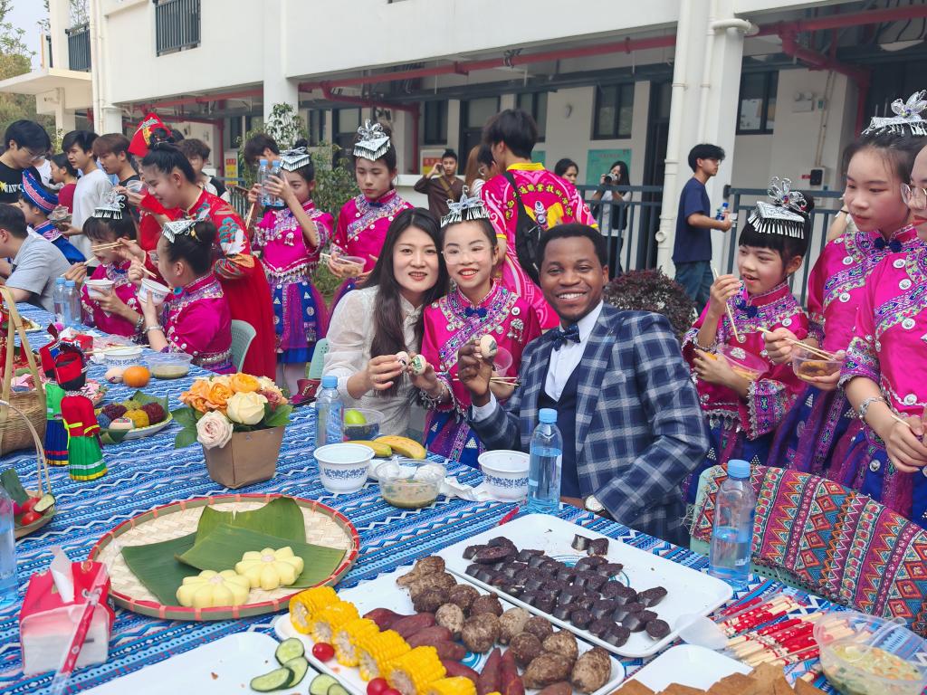 即将毕业的潘迪感慨地说:“这是我学生时期最后一次参加“三月三”活动了,这几年我看到了不同民族文化的精彩,每一次活动都让我对民族文化有了更深的理解,我也期待毕业后能再回广西参加‘三月三’活动。”来自越南的大一学生李世伟参加了歌舞表演,他激动地说:“这是我第一次在‘三月三’舞台上表演,虽然有挑战,但非常难忘,也很有意义。越南与中国山水相依,文化相通,未来我会更加积极地参加各种文化活动,做中国和越南文化的交流使者。”