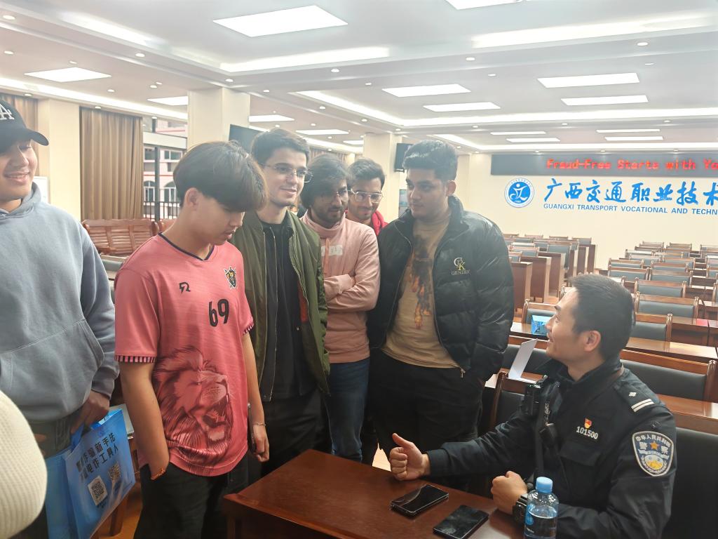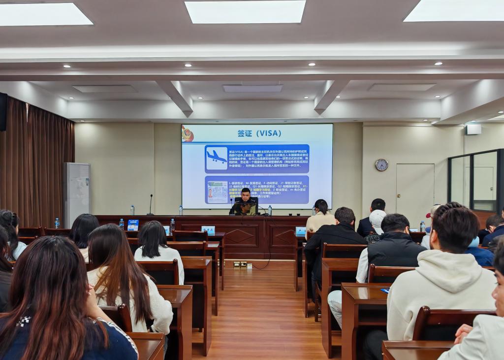 本次活动还特邀南宁市出入境管理支队的李思丹警官为学生们进行了来华留学普法知识培训。