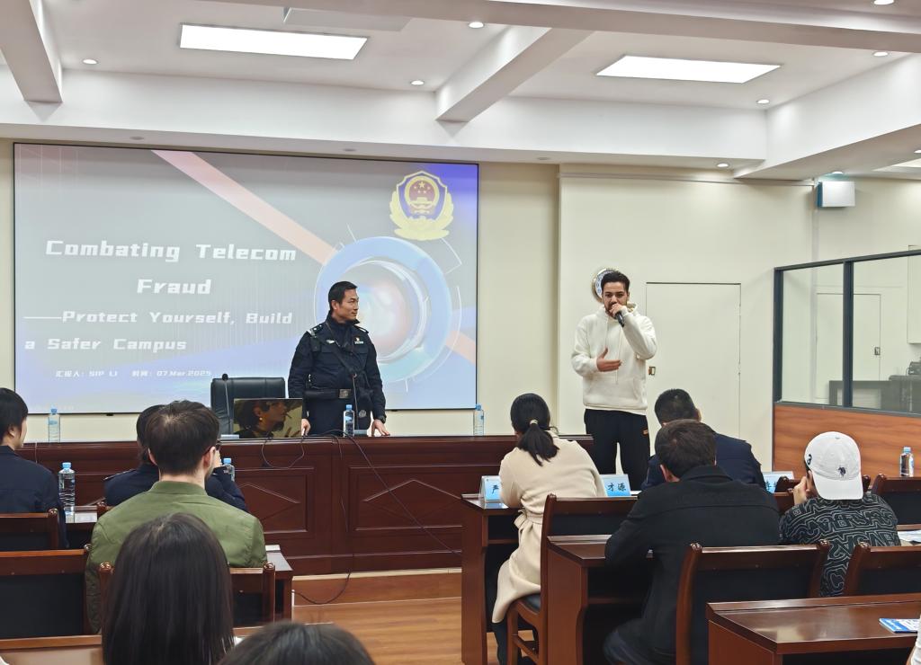 2025年3月7日,PP电子游戏网站迎来了一场别开生面的安全主题教育培训活动,新城派出所、南宁市出入境管理局等单位的警官受邀来到学校,以生动有趣的方式为国际学生们带来了一场关于预防电信诈骗的知识盛宴,为国际学生筑起一道坚实的防电诈防线。
