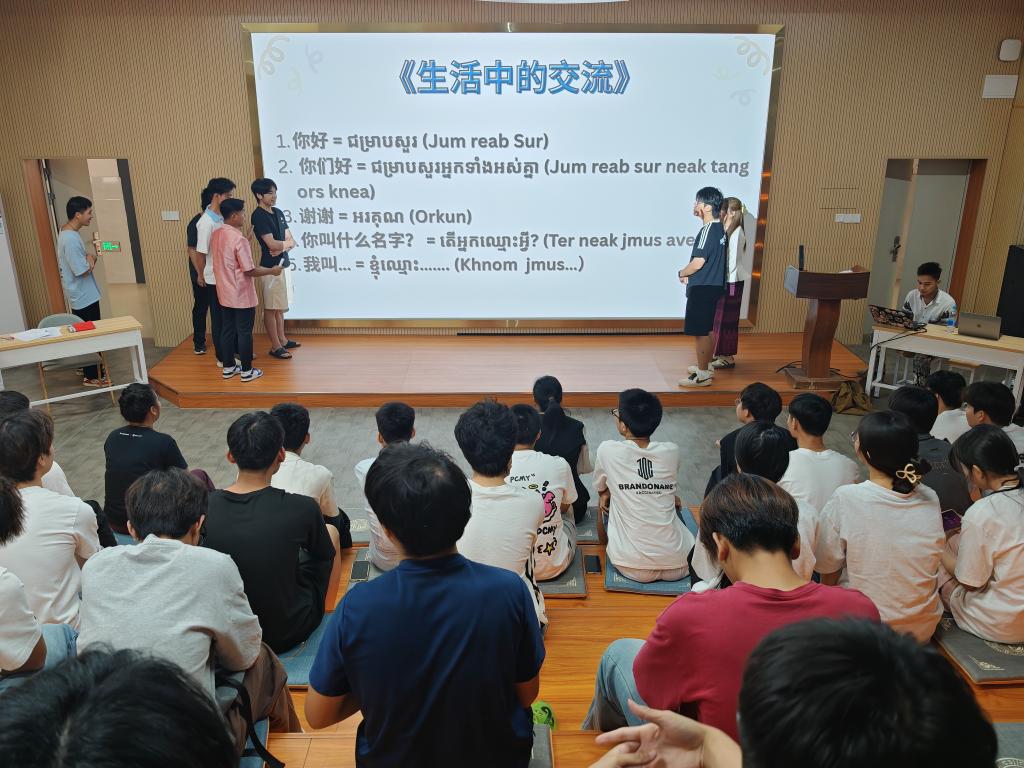 (东盟国际学院 讯 严丽/文)为了搭建促进中外学生互动交流的文化平台,东盟国际学院牵头主办了“语”见东盟—东盟文化体验营活动。2025年4月28日和4月29日,昆仑校区和园湖校区分别迎来活动第二期,140余名中国学生参与本次活动。活动中,来自柬埔寨的四名学生化身小老师,现场教中国学生说柬埔寨语,还向中国学生介绍柬埔寨的文化,分享中柬友好交往历史,现场掌声阵阵,气氛热烈,活动取得圆满成功。