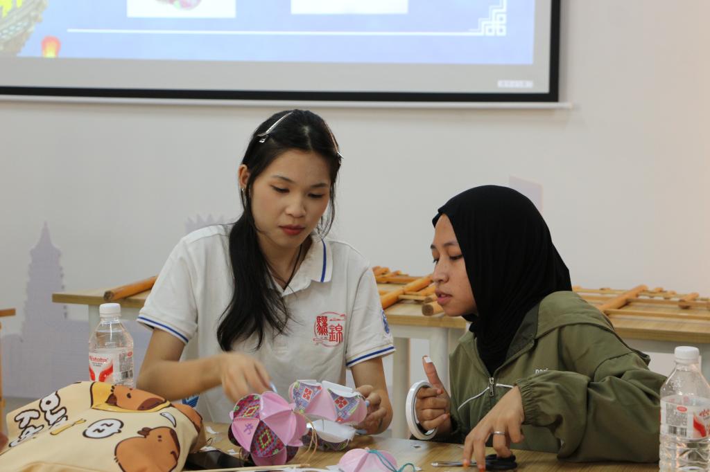 活动以非物质文化遗产为主线,贯穿始终。侗族传统建筑营造技艺的讲解与体验,让学生们感受到中国传统建筑的智慧与美感;绣球灯笼的手工制作,则融入了壮族绣球的吉祥寓意与中秋团圆的节日内涵。在亲自体验和制作的过程中,中外青年更深刻体会到中华文化中“匠心”与“传承”的精神内核。