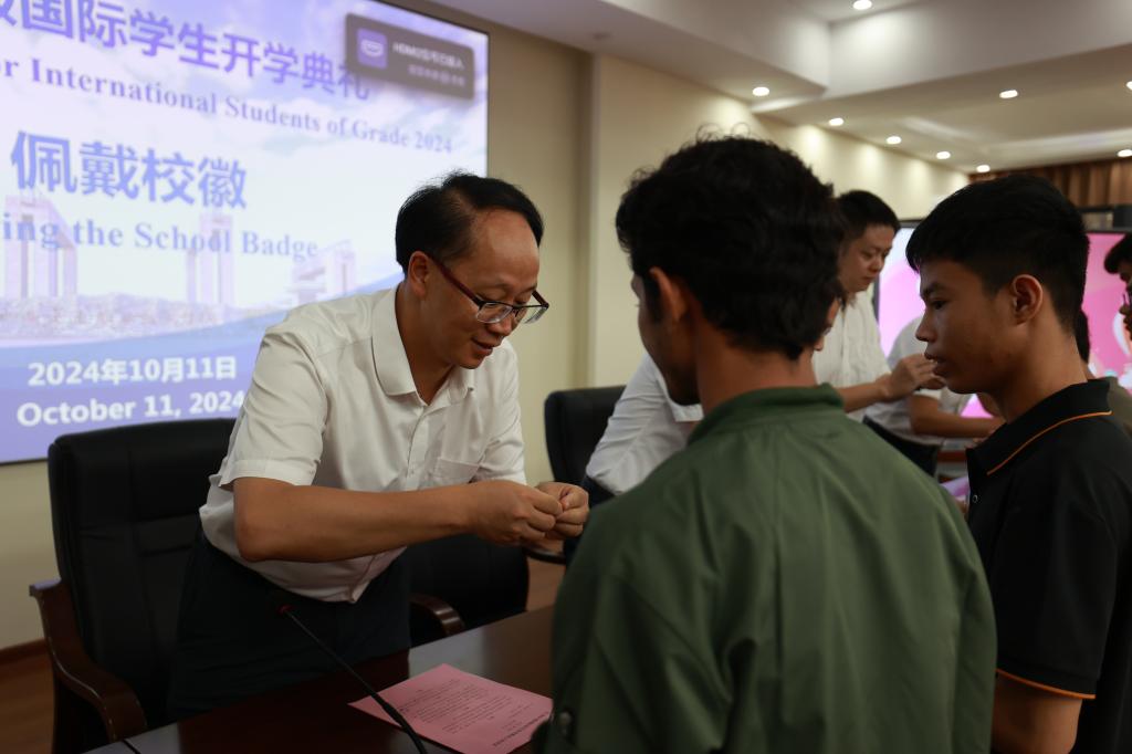 为了欢迎新入学的国际学生,展现学校的热情与包容,激发国际学生的学习热情,2024年10月11日,学校在园湖校区图书馆三楼会议室举行2024级国际学生开学典礼,校长李文勇出席典礼并致辞。有关部门负责人、中文教师代表和全体2024级国际学生参加了此次活动。