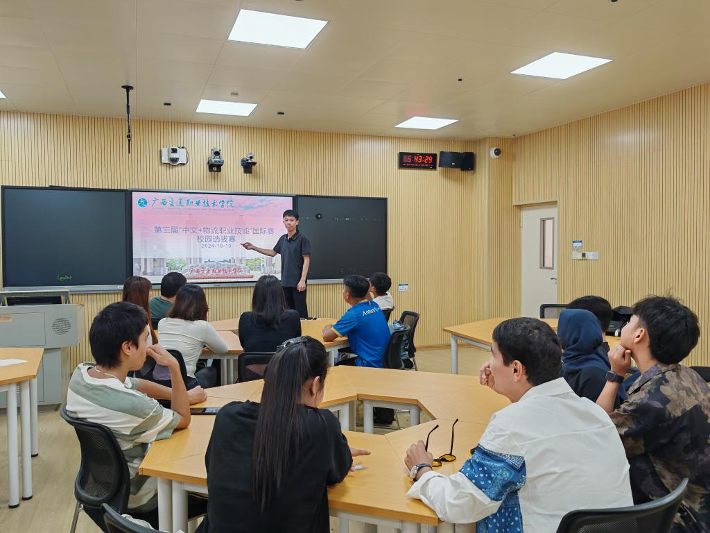 2024年10月10日,由东盟国际学院、经济管理学院联合主办的第三届“中文+物流职业技能”国际赛校园选拔赛圆满落幕。这是一场为学校选拔现代物流专业、商务管理专业优秀人才而精心准备的盛宴,旨在通过比赛的形式,促进物流领域、商务领域的人才交流与合作。此次选拔赛有来自6个国家的30名国际学生积极参与。最终有6名国际学生脱颖而出,获得了参赛第三届“中文+物流职业技能”国际赛初赛的资格。