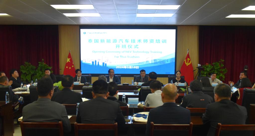 president Li Wenyong gave a speech at the opening ceremony, and warmly welcomed the arrival of Thai students and introducing the development process, professional settings, and educational characteristics of the College. He stated that the College has a comprehensive transportation vocational education discipline system and an international talent cultivation system, focusing on cultivating transportation technology skilled talents with language proficiency, strong skills, cultural integration, and international recognition. The College will fully leverage its own advantages to provide high-quality new energy vehicle technology training for Thai teachers.