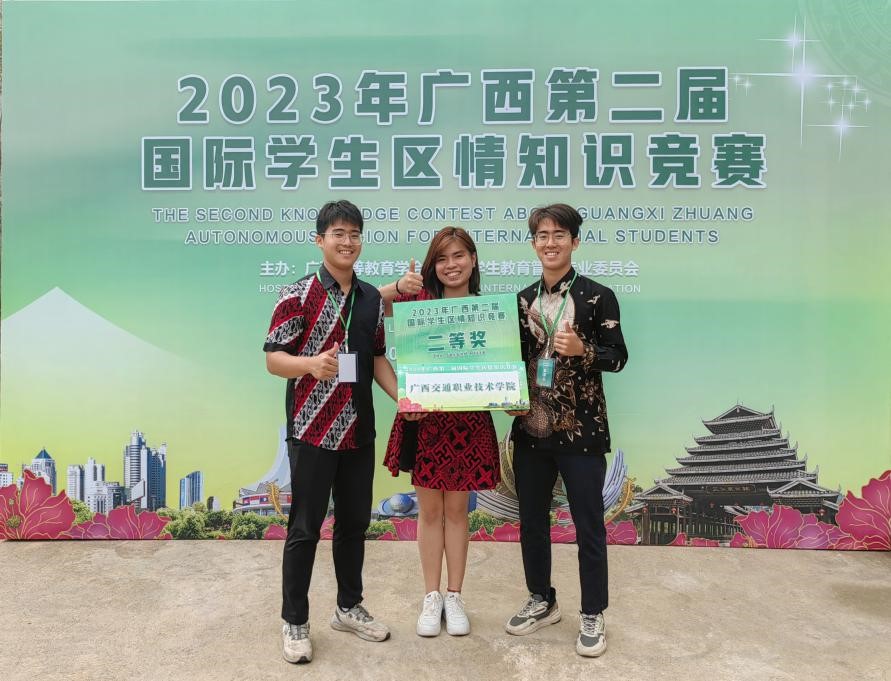 On December 14th, 2023, the second Guangxi International Student Competition of Knowledge about Guangxi came to an end at Liuzhou City Vocational College. According to the competition requirements, the College selects three international students to participate in individual competitions and forms a team to participate in team competitions. After careful preparation, three students from the College won three first prizes in the individual competition with full marks, and achieved excellent results in the team competition with second prizes.