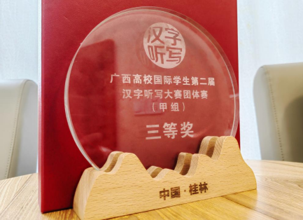 Recently, in the Guangxi International Student Dictation Competition, the College's international students competed with 107 international students from 22 universities and 15 countries on the same stage, and got good grades. They won one second prize and two third prizes in Group B’s individual competition, and one excellent prize in Group C’s individual competition. As the only vocational college participating in Group A’s competition, our team was calm and steady, and ultimately won the precious third prize in Group A with fourth place among the 12 teams representing the highest level of the competition.