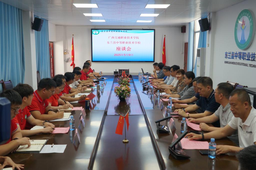 5月9日,调研组集体赴东兰县职业技术学校,调研学校“组团式”教育帮扶成效,慰问派驻该校的三名教师,并与东兰职校领导班子座谈。座谈会上,学校调研组充分肯定帮扶团队在专业建设、师资培训及学生技能提升等方面取得的阶段性成果,表示将继续发挥高校资源优势,助力东兰职业教育高质量发展。东兰县领导对学校的长期支持表示感谢,希望进一步深化校地合作,共育乡村振兴新动能。