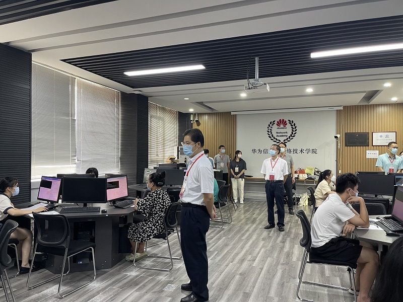 自治区财政厅党组书记关礼、副厅长陈海涛等领导一行在李文勇校长、交通信息工程学院负责人陪同下对考场环境、防疫工作和考场应试情况进行了巡察。