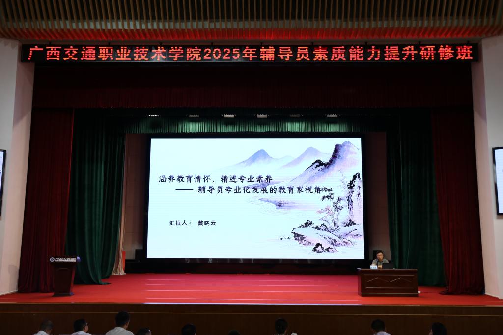 研修班历时3天,共举办6场专题报告。戴晓云副校长围绕《教育家精神引领下的辅导员专业化发展》主题讲授首课,他回顾了学校近年来党建思政工作的成效与经验,勉励全体辅导员勇担时代强国使命,奋力争先进位,为把学校建成交通特色鲜明的高水平职业技术大学而团结奋斗。