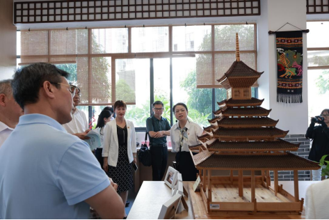 智能建造与低空技术学院党总支书记姜敏介绍交旅文创坊清廉作品