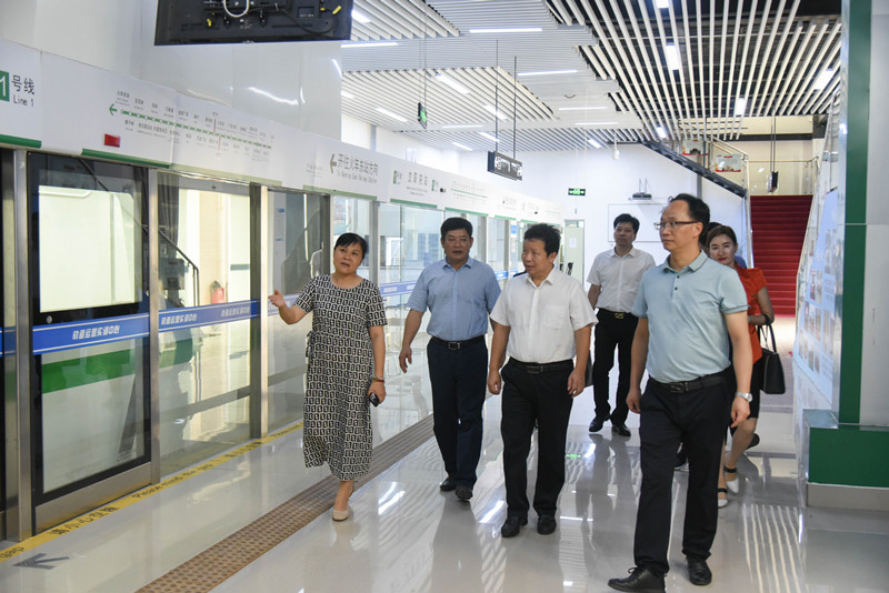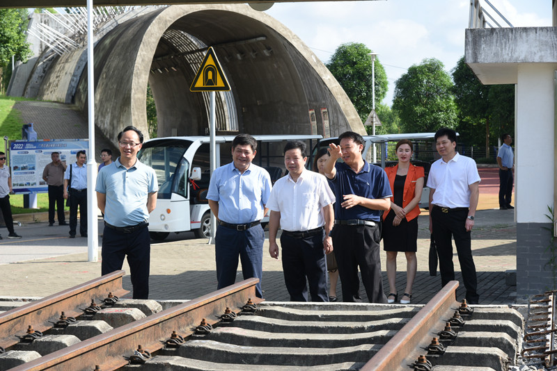 古国章组长一行在温书记、李校长陪同下,参观了路桥教学工场、昆仑校区二期建设项目、汽车实训基地、交通实训大楼、轨道实训基地和交通科普基地,实地了解了学校规划建设、教育教学情况。