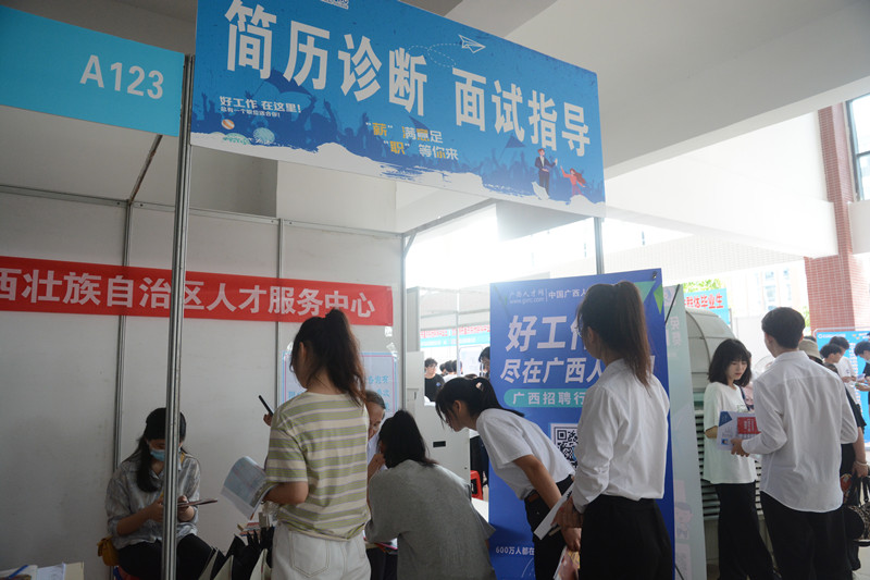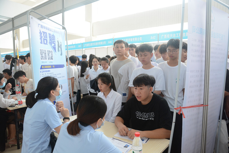 在当前社会经济形势和疫情防控双重压力下,学校主动谋划,积极作为,始终坚持疫情防控不放松,就业工作不断线,通过“线上+线下”“大型+专场”的方式搭建用人单位和学生之间交流的招聘求职平台,为应届毕业生及即将离校实习的同学提供更多与企业面对面的机会。此次双选会学校邀请到了广西交科集团有限公司、柳州五菱新能源汽车有限公司、广西北部湾银行股份有限公司、天皓建筑科技有限公司等20家知名优质企业,并设立重点群体毕业生招聘专区,优先招录重点群体毕业生,确保重点群体毕业生就业“无压力”。同时,学校也邀请了广西壮族自治区人才服务中心“金牌职业指导老师"周长明咨询师到现场为同学们免费提供一对一的就业指导服务,广西大学生就业服务中心主任农俊东也亲临现场指导工作,使学校就业指导服务更精准更到位。