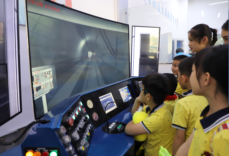 小学生在城市客运及多式联运科普区体验