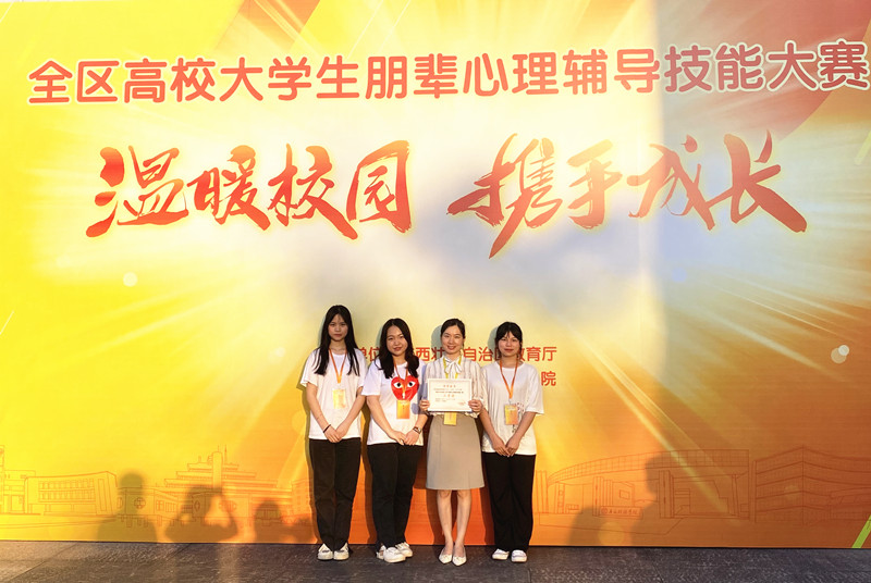 本届高校大学生朋辈心理辅导技能大赛以“温暖校园,携手成长”为主题,分为主题班会视频展示、心理健康知识测试、朋辈心理辅导模拟三个环节。在现场朋辈心理辅导模拟比赛现场,参赛队伍以饱满的热情,丰富的心理健康知识,娴熟的心理辅导技能,精彩展现了朋辈心理辅导独特的魅力,获得评委和师生的肯定,最终我院代表队在全区93支队伍中脱颖而出,获得二等奖的优异成绩。