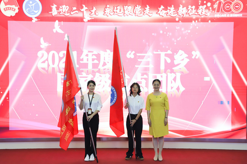 学校党委副书记莫海燕为2021年度“三下乡”国家级重点团队授旗
