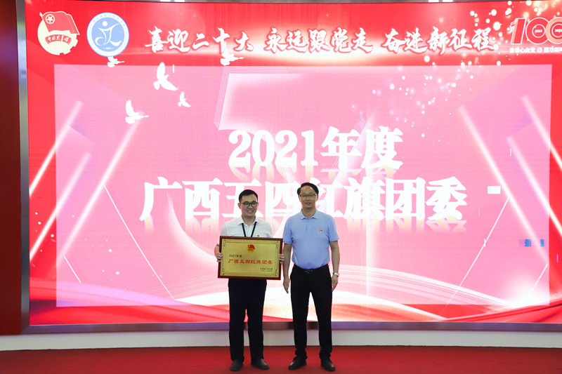 校长李文勇为获得“2021年度广西五四红旗团委”集体颁奖
