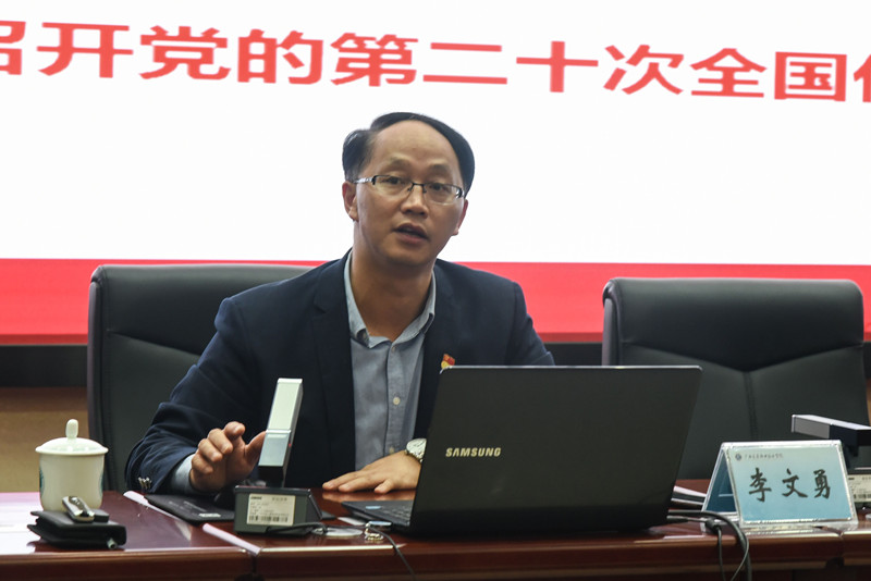 (路桥工程学院 校办 讯)12月9日,李文勇校长在昆仑校区第一学术报告厅为机关第二党总支和路桥工程学院党总支的党员教师宣讲党的十九届六中全会精神和自治区第十二次党代会精神。