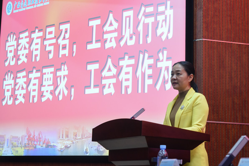 自治区交通运输厅工会主席廖红梅到会指导并讲话,勉励各位代表以这次大会为新的起点,在学校党委的领导下,和衷共济、埋头苦干、勇毅前行、再启新程,共同把广西交职院建设得“更加开放、更加高质、更加和谐、更加美丽”,推进落实厅党组关于做大做强交通职业教育的决策部署,续写学校事业高质量发展的新篇章。