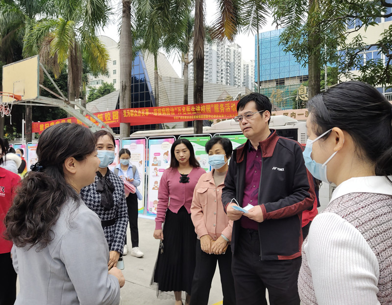 陈海峰副校长参加了现场宣传活动,与疾控中心专家就结核病防范进行了深入了解,明确了学校开展结核病防治知识的重要性,并邀请专家们到昆仑校区、相思湖校区进一步开展结核防治宣传活动。