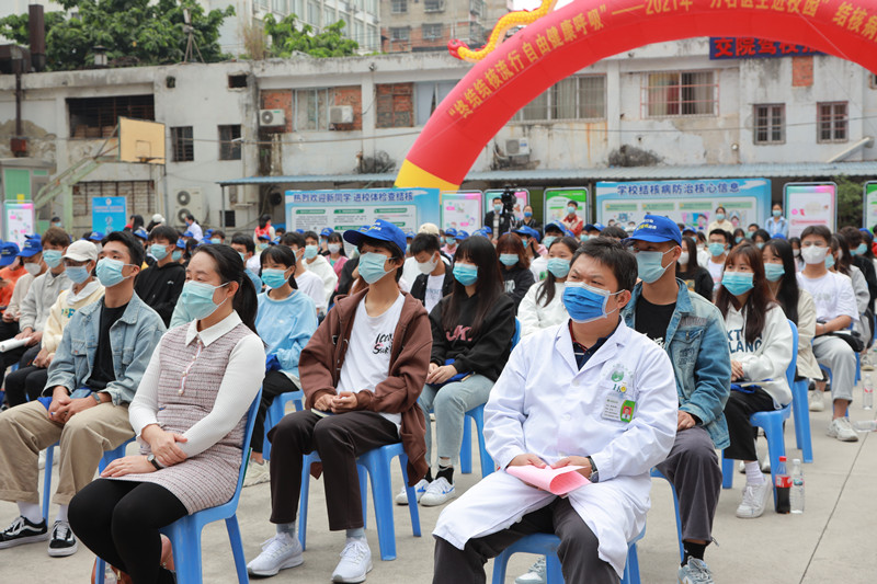 结核病防治所梁大斌副所长主讲校园结核病防治专题讲座,现场穿插了结核病知识互动问答。同学们认真听讲,积极参与,踊跃抢答,气氛热烈。现场还设有南宁市第四人民医院专家义诊台,为咨询的学生们答疑解惑。交通信息工程学院凌诗姗作为学生代表上台发言,倡议同学们注重个人健康,重视结核防范。