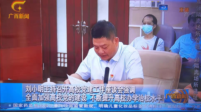 (党委组织部 讯 卢东/文)10月9日,自治区党委副书记、自治区党委教育工作领导小组组长刘小明在广西民族大学主持召开高校党建工作座谈会,听取做好新时代高校党建工作意见建议。自治区党委组织部、宣传部、教育工委负责同志以及广西大学、广西师范大学、广西民族大学等10所高校党委负责同志作了发言。