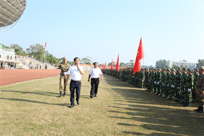 大会上,学校党委书记温宗胤做了主题讲话,勉励参训新生厚植家国情怀,胸怀时代担当,让美好青春无愧于伟大的新时代。他充分肯定了2021级新生在军训和会操中的优异表现,希望大家巩固军训成果,发扬优良传统,将军训激发的斗志、磨砺的意志、淬炼的品质内化为自己成长成才的动力;忠于党和祖国,坚守初心使命,增强做中国人的志气、骨气、底气,不负时代,不负韶华,不负党和人民的殷切期望;树立理想目标,不断砥砺奋进,以“青年必当先”的姿态,与民族同命运,与祖国共奋进、与时代齐发展。