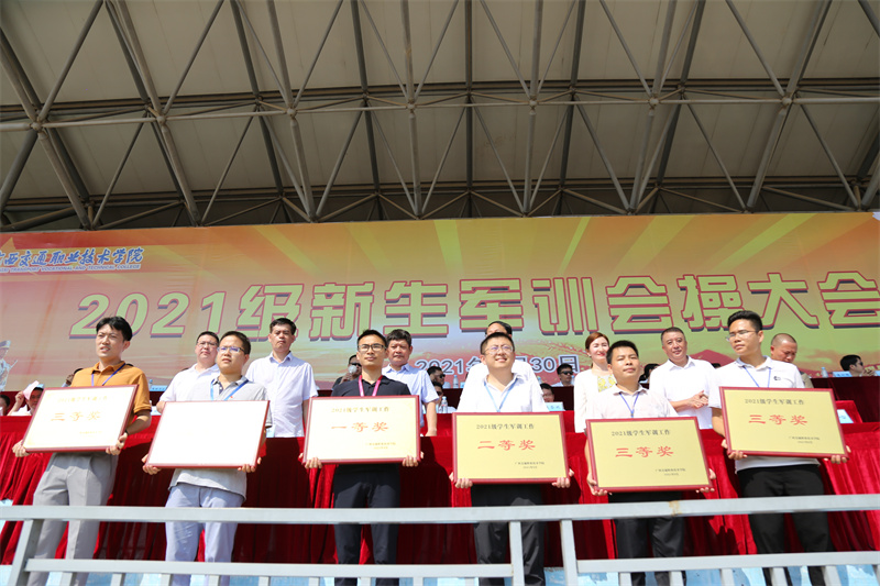 会操结束后,学校领导宣读了获奖文件并为优秀组织奖、军训标兵、星级宿舍等获奖代表颁奖。