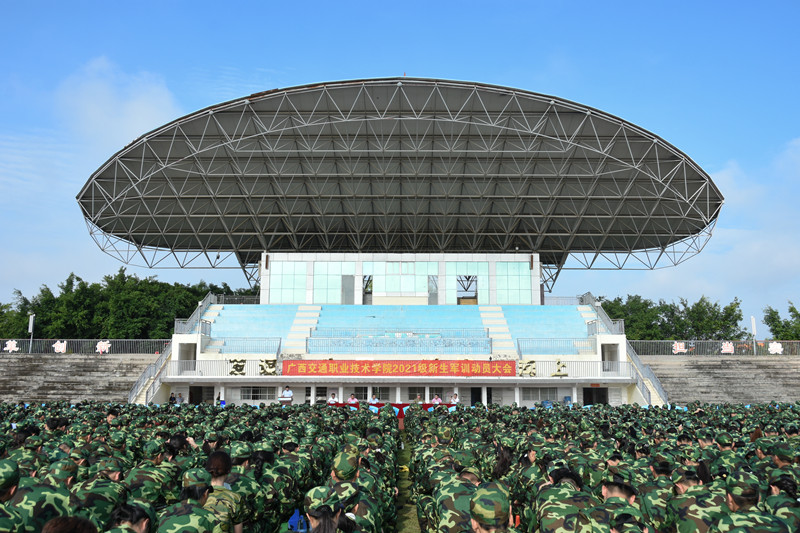 军训动员大会在庄严的国歌声中拉开序幕。学校领导结合建党100周年、习近平总书记在“七一”重要讲话中关于全面加强国防和军队现代化建设的重要论述、学校作为广西唯一军队士官直招定点培养院校近年来在国防教育和征兵工作中的优异成绩发表了“赓续红色血脉