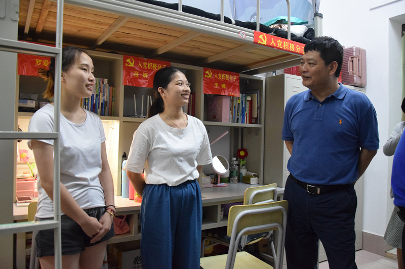 校党委书记温宗胤、校党委副书记莫海燕深入宿舍与学生话家常