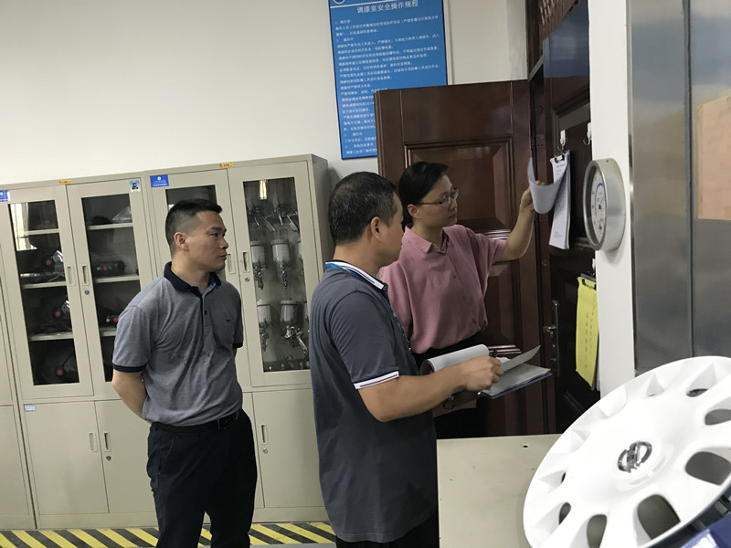 陈海峰副校长就学校教学实验室基本情况、学校实验室安全工作概况、实验室安全自查情况、不足和改进措施四个方面对PP电子教学实验室安全管理工作进行了介绍。听取汇报后,检查组一行来到了教学工场、汽车运用生产性实训基地、汽车楼实验(训)室开展实地检查,重点检查了消防安全、危险化学品、易燃易爆物品的管理情况。
