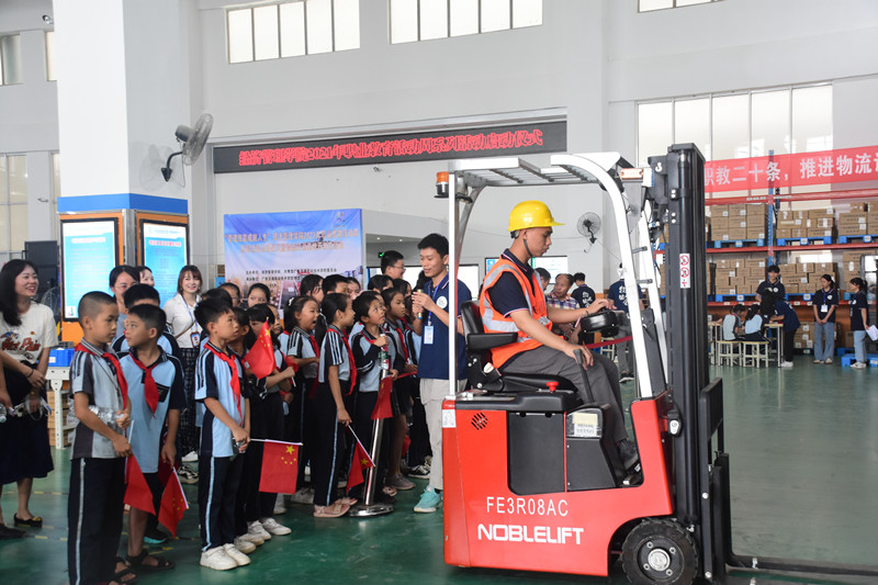物流实训基地开放日活动中,正在积极备战全国职业技能竞赛的同学们为丹桥小学的师生们进行了精彩的国赛标准技能展示。选手们精准、娴熟的操作和默契的配合赢得了小朋友们及现场观众的喝彩。同时,物流专业的师生们还为丹桥小学师生代表准备了AR、VR、平板3D等智慧物流体验项目,新奇的体验激起了小朋友们的兴趣。