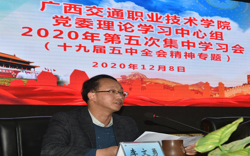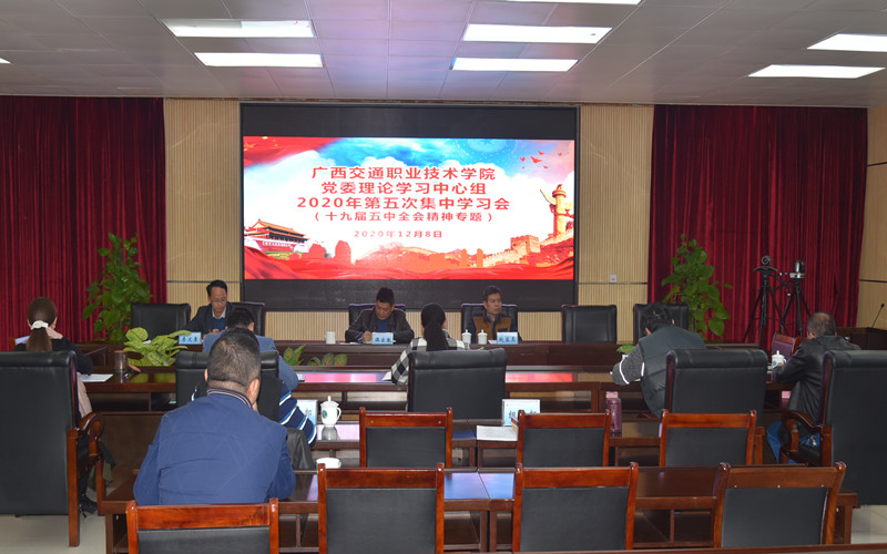 (党委宣传部 讯)12月8日,学校党委理论学习中心组在管理楼五楼会议室召开2020年第五次集中学习会。党委理论学习中心组成员温宗胤、李文勇、莫海燕、韦红教、陈海峰、麻新桃、谭雄参加学习,党委办公室、宣传部、组织部负责同志列席学习会。学校党委书记温宗胤主持学习会。自治区党委教育工委宣传部部长、教育厅思政处处长赵益真到会巡视旁听、指导。
