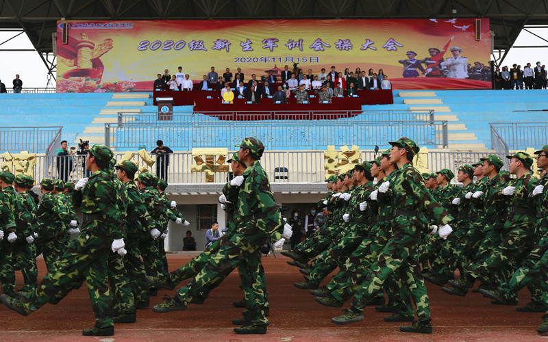 学生工作部(处)张楗、黄春莉/文 鲜衣怒马少年时,不负韶华行且知。11月15日上午,一场军味浓、战味强、兵味足的视觉盛宴---2020级新生军训会操大会在昆仑校区田径运动场隆重举行。广西军区战备建设局处长胡秋上校、学校党委书记温宗胤、校党委副书记莫海燕、总会计师谭雄、广西陆战军训基地唐立达主任以及学校相关职能部门、二级学院负责人出席大会。大会由莫海燕副书记主持。