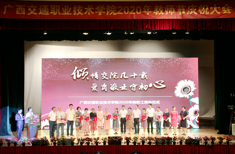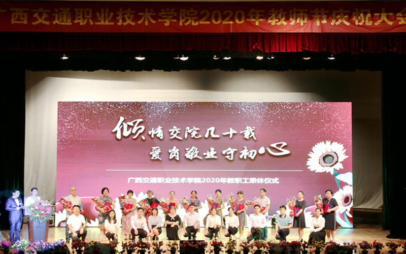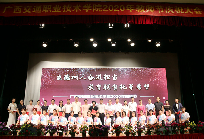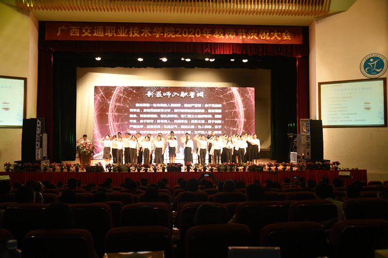 (党委宣传部 讯 陆丽程/文 苏江、张丽梅、陆丽程/图)立德树人奋进担当,教育脱贫托举希望。9月10日晚,PP电子在园湖校区大礼堂隆重举行了2020年教师节庆祝大会。学校党委书记温宗胤致辞。大会进行了退休教职工荣休仪式、新教师入职宣誓仪式、“奋进交院人”风采展、师生献礼文艺表演。学校党委书记温宗胤、校长李文勇、党委副书记莫海燕、副校长韦红教、陈海峰,纪委书记麻新桃、总会计师谭雄出席活动,全校教职工参加了本次庆祝大会。