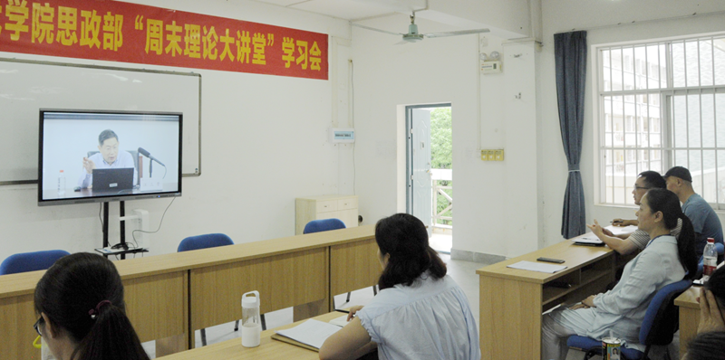 (思政党支部 讯 杨中陶/文/吴长苏/图)9月18日,思政部组织全体教师收看了全国高校思想政治理论课教师周末理论大讲堂第39讲。学院党委副书记莫海燕同志参加了学习活动。本次讲座由中国人民大学马克思主义学院秦宣教授主持。华东师范大学马克思主义学院常务副院长、博士生导师王建新教授作了题为《习近平总书记关于党对教育事业全面领导的重要论述导学》的报告。 另外,中国人民大学中国扶贫研究院院长、全国政协参政议政人才库特聘专家、国务院扶贫领导小组专家咨询委员会委员汪三贵教授做了题为《决胜全面建成小康社会,决战脱贫攻坚》的报告。