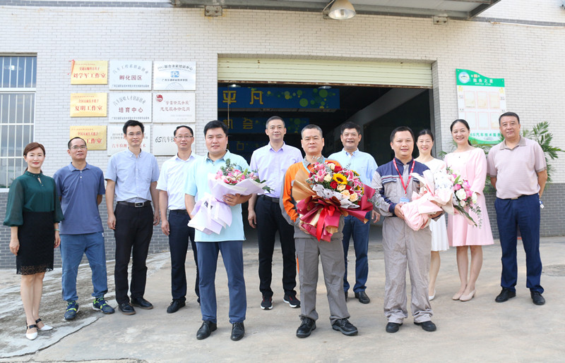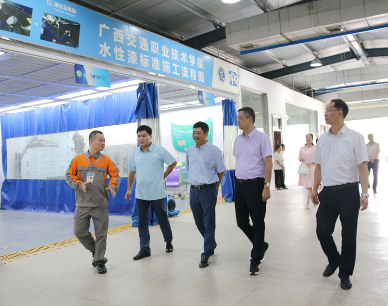 胡华平副厅长一行首先来到汽车工程学院汽车整形实训中心考察并指导实训中心建设,并与温宗胤书记、李文勇校长共同为PP电子全国交通科技英才刘学军工作室及全国交通技术能手夏明工作室、全国交通技术能手林松工作室揭牌,向三位工作室负责人表示慰问,鼓励三位教师努力工作,为我区培养更多交通运输优秀人才。