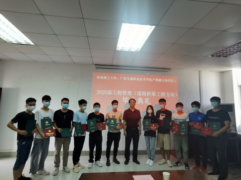 李院长对毕业生们顺利毕业表示祝贺。他说,工程管理(道路桥梁工程方向)专业本科班由桂林理工大学与我院联合办学,旨在联合培养高端应用型本科人才,桂林理工大学和广西交职院两个母校都给予了大家深切的关心和精心的培育,让同学们收获了学识,明确了方向,健全了人格,增长了才干,增强了体魄。面对即将离开校园,步入社会的毕业生们,李文勇院长送去了“严谨、勤学、感恩、奋斗”的暖心寄语:一是在职场中要秉持严谨的工作态度,求实的工作作风,兢兢业业、不断创新;二是步入社会后坚持不断学习,学习行业的新知识新规范,交通基础设施建设的技术发展日新月异,仪器设备升级迭代快速,只有保持勤学苦练的学习态度,才能更好地满足行业的发展需求,适应社会的进步;三是常怀一颗感恩的心,感恩呕心沥血抚育我们的父母,感恩春风化雨般培育我们的老师,感恩给予支持和依赖的同学们,这些都是我们人生中最宝贵的财富;四是珍惜光阴,不负韶华。谨记习总书记“青春由磨砺而出彩,人生因奋斗而升华”的寄语。在人生的道路上,一定要努力奋斗和拼搏,坚定理想信念,站稳人民立场,练就过硬本领,投身强国伟业。同时,李院长代表学院向2020届全体毕业生发出诚挚的邀请,希望大家毕业后仍多多关注学院的发展和建设,欢迎大家以后重返校园,常回来看看。