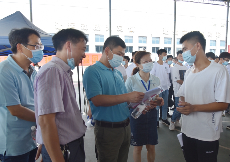 (招就处 讯 李璇、胡冠华/文 陆丽程/图)6月22日至23日,学院2020年毕业生夏季校园线下系列招聘会路桥专场在昆仑校区运动场球类运动馆成功举办。学院党委书记温宗胤,院长李文勇,党委副书记莫海燕,副院长韦红教、副院长陈海峰到招聘会现场指导工作。