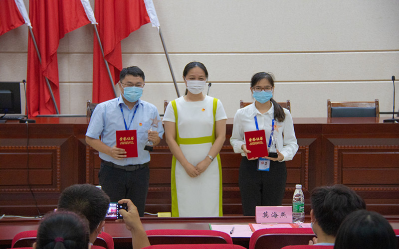 学院团委副书记张佺宣读表彰文件。表彰大会现在举行两优两红、战“疫”最美志愿者、战“疫”先进志愿者的先进集体和先进个人代表颁奖活动。
