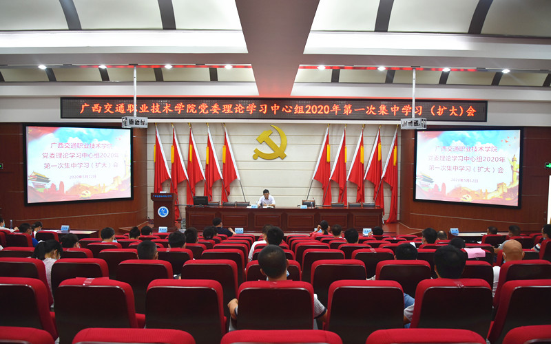 (党工部 讯 张丽梅/文、图)5月12日,学院召开党委理论学习中心组2020年第一次集中学习(扩大)会。学院党委书记温宗胤导学并作中心发言。学院领导班子成员、广西交通运输学校领导班子成员、学院全体中层以上党员领导干部参加了集中学习。