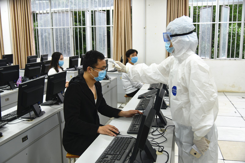 本次模拟演练内容为学生在校期间出现发热等不适症状的三个场景应对,分别为进入校门、教室上课和宿舍晨午检。演练过程环环相扣,紧张有序。