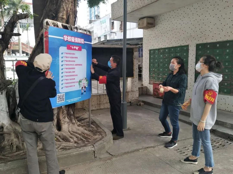 先锋队投入工作第一天,就在校门口协助劝阻了两名发烧人员进入生活区。在上门发放校园出入卡的时候,一些住户同志对队员身份心存疑虑,戴晓云感慨说,这种阵势很是少见,让我想起非典,想起20年前的人口普查,入户调查。他提出,“老同志对不熟悉的人敲门都会有所戒备,但对红袖章有特别感情,容易亲近的”。说干就干,李锦马上到学校周边挨家找开门营业的广告公司制作红袖章。赵海燕现身说法道,人家见我佩戴红袖章,对我们的工作就配合多的,我的底气也足了。