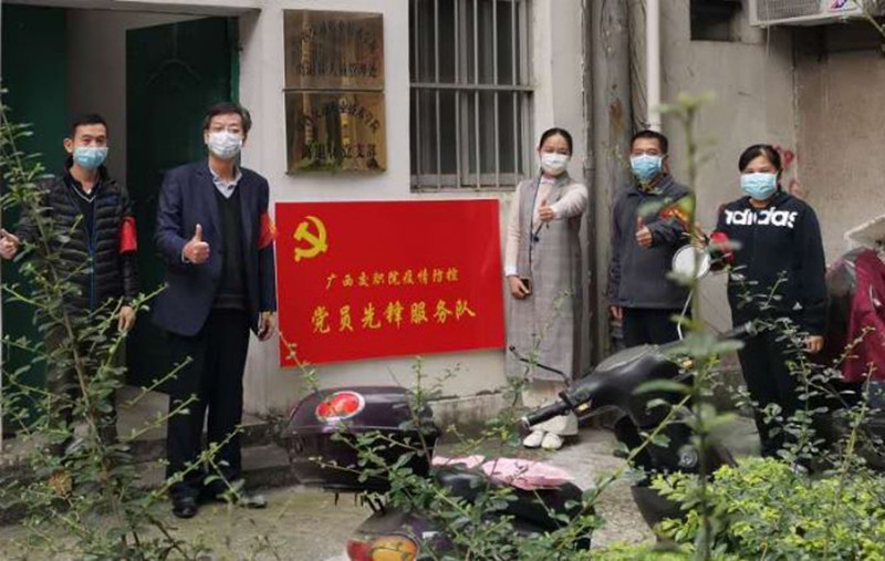在广西交职院园湖校区,一支由党员组成先锋服务队,战“疫”前线逆风而行,用他们浓浓的关爱和周到的服务,为离退休老同志提供生活帮助、防护宣传、心理疏导等志愿服务,帮助老同志特别是行动不便、空巢、独居老人等重点人群安全、安心地度过疫情防控期,为他们构筑起一道温暖防线,让党徽在疫情阻击一线熠熠生辉。