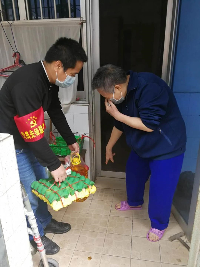 戚勇、全永强、卢前则在后门“蹲守”,看见行动不便的老同志外出购物,主动上前,记好需要购买的物品之后,戚勇自告奋勇蹬着单车赶往市场采购。由于小区封闭管理,外来人不给随意进出,一些住户订购或亲属送来的物资,只能放在门口,他们便主动帮忙送上家门。在先锋队员的带动下,园湖生活区一些同志,也积极参与到志愿服务中,主动走出家门,为身边有需求的住户提供力所能及的帮助。